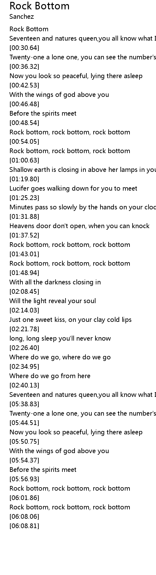 Rock bottom, rock bottom, rock bottom |