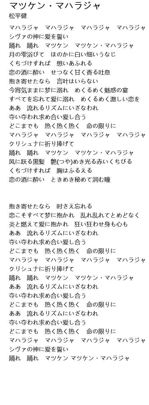 | 踊れ 踊れ マツケン マツケン・マハラジャ |