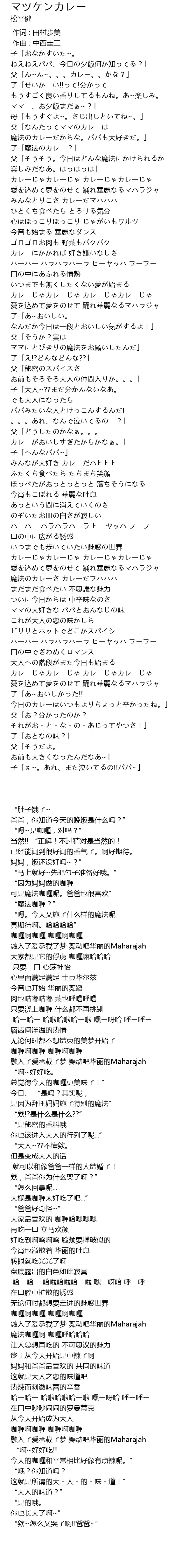 | [00:35.004] | 可是魔法咖喱呢。爸爸也很喜欢” |