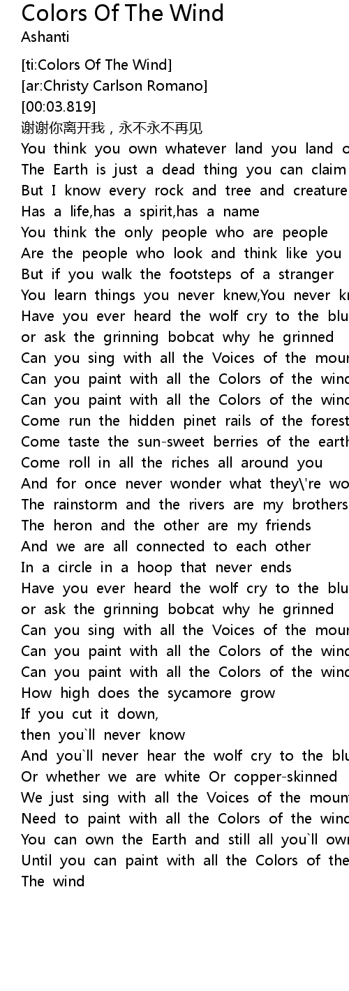 | [03:23.171] | Until you can paint with all the Colors of the wind |