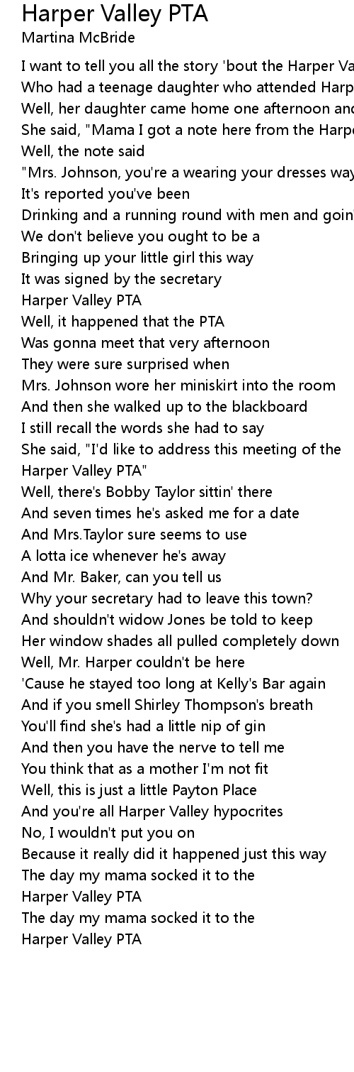 She said, "Mama I got a note here from the Harper Valley PTA" |