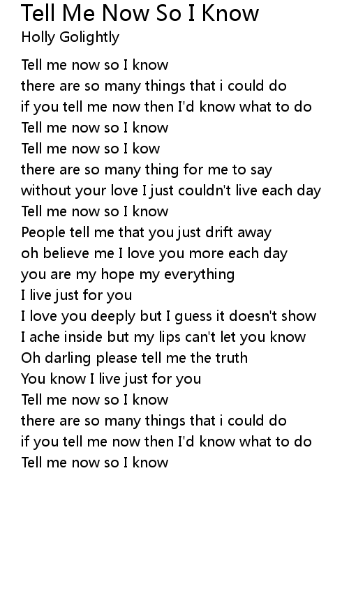 Tell me now so I know |