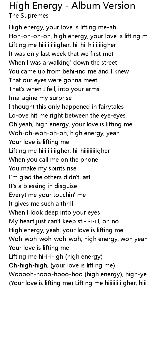 Oh yeah, high energy, your love is lifting me |