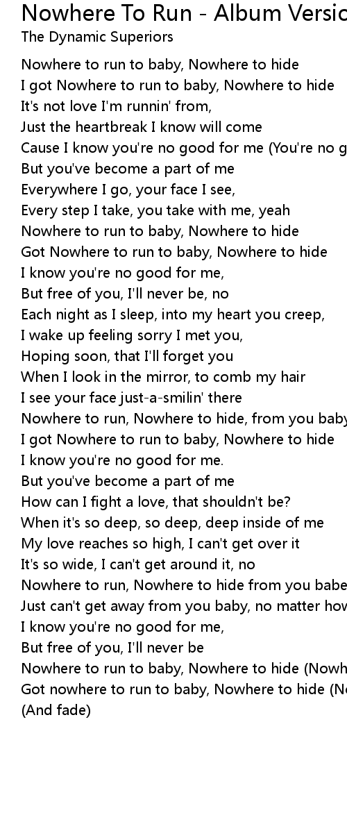 I got Nowhere to run to baby, Nowhere to hide |