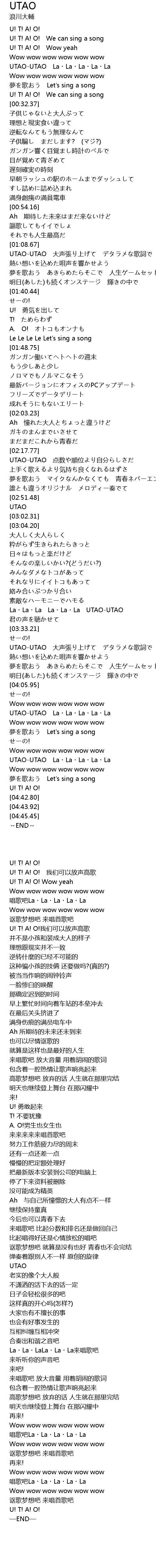 | [00:11.50] | U! T! A! O! Wow yeah |