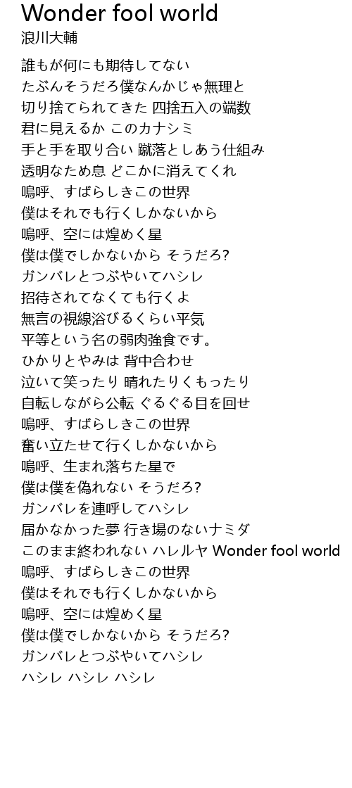 | [03:00.31] | このまま終われない ハレルヤ Wonder fool world |