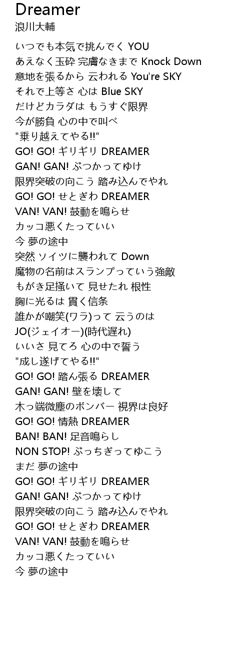 | [02:59.120] | GO! GO! DREAMER |