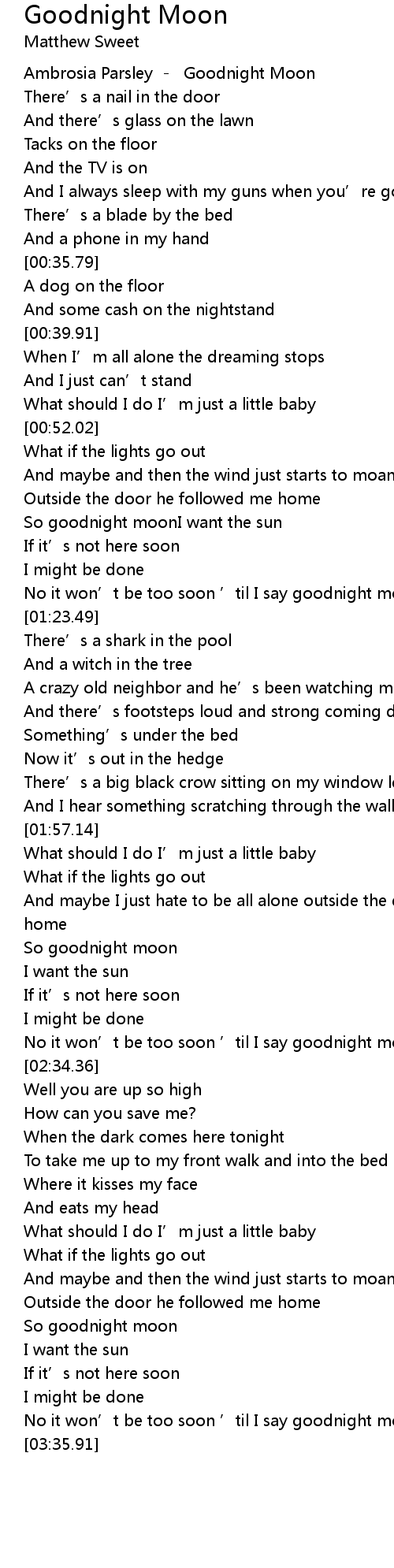 | [00:05.09] | Ambrosia Parsley - Goodnight Moon |