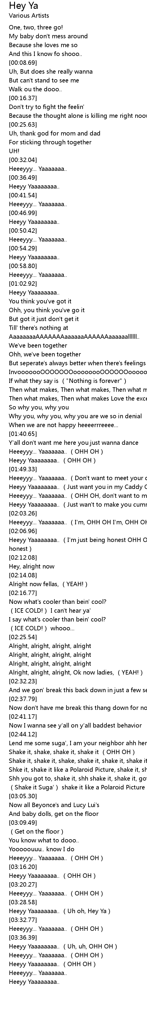 | [03:29.89] | Heeyy Yaaaaaaaa.. Uh oh, Hey Ya |