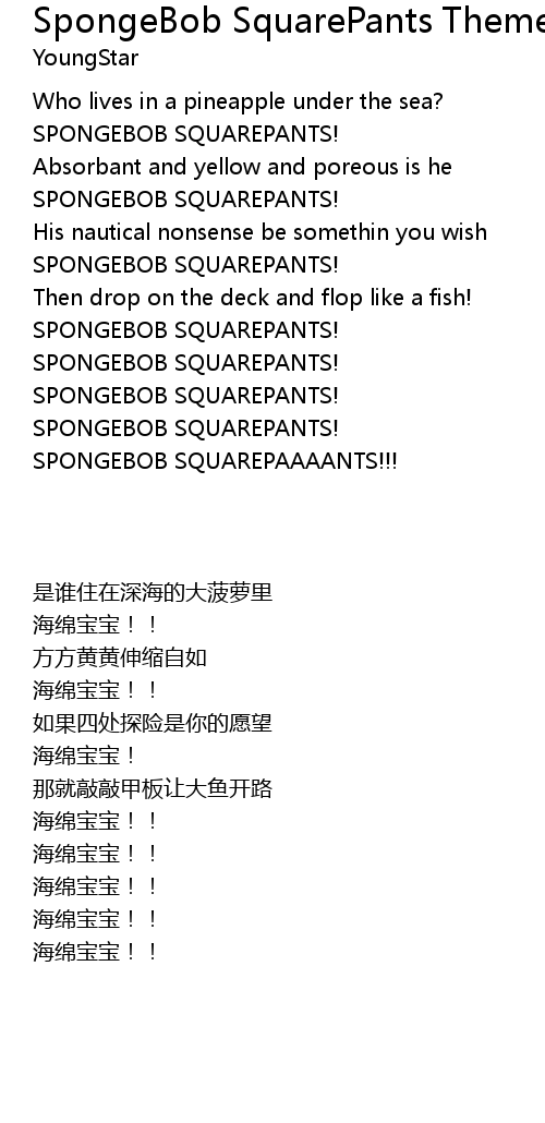 | [00:35.51] | SPONGEBOB SQUAREPAAAANTS!!! |