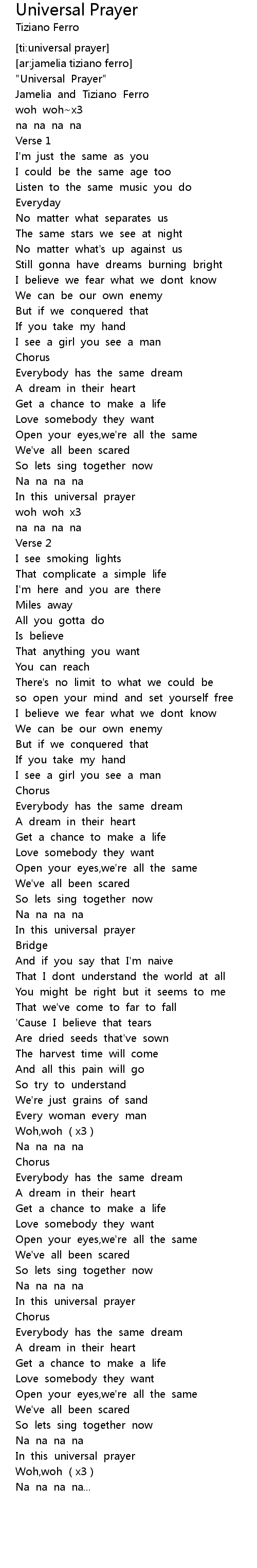 | [ti:universal prayer] | |