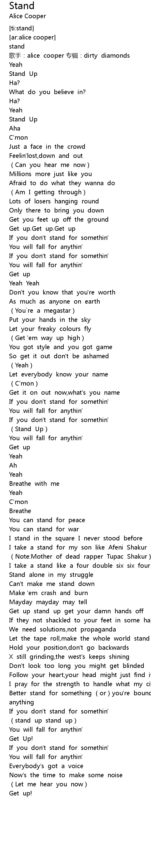 | [03:00.305] | Better stand for something (or)you're bound to fall for anything |