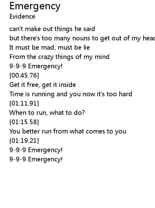 | [01:19.95] | 9-9-9 Emergency! |