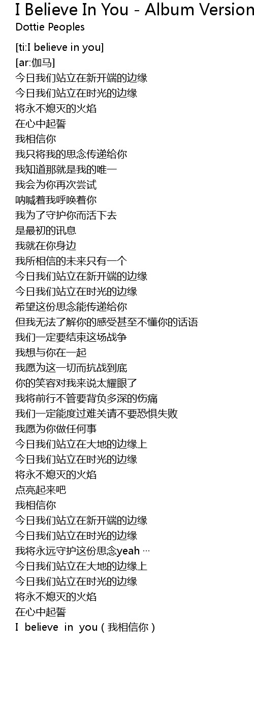 | 歌曲 | I Believe In You - Album Version |