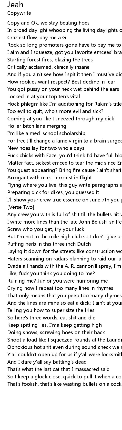 And the lines are mine so eat a dick; I ain't at your nine to five |
