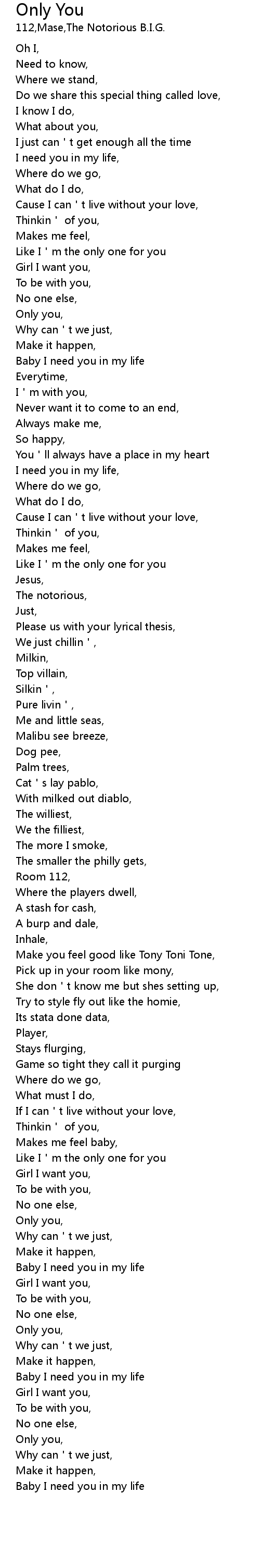 | [01:03] | Like I m the only one for you |