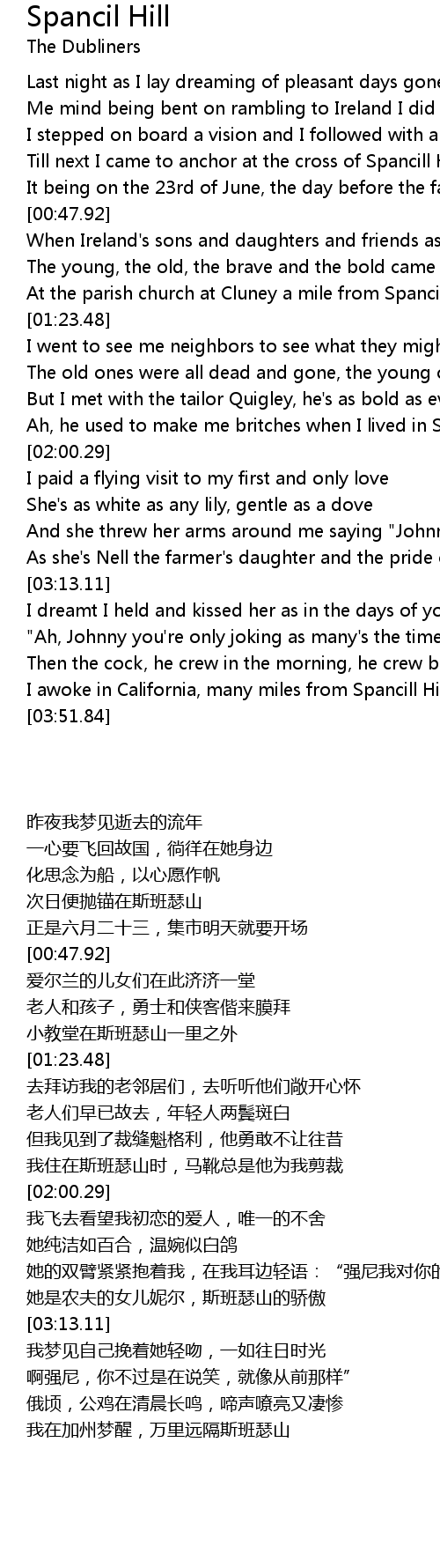 | [00:36.45] | Till next I came to anchor at the cross of Spancill Hill |