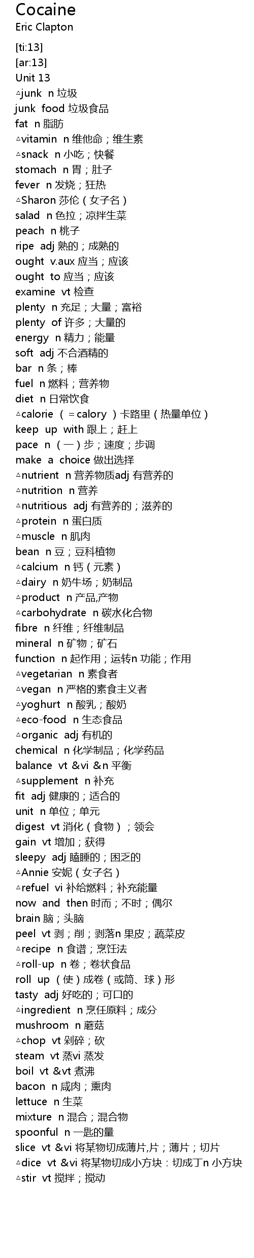 | [00:11.491] | △vitamin n 维他命;维生素 |
