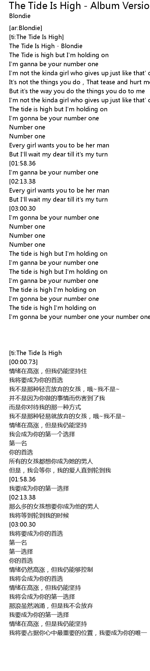 | [02:50.60][03:00.30] | The tide is high but I' m holding on |