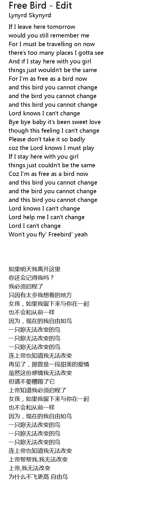 Free Bird - Edit 歌词