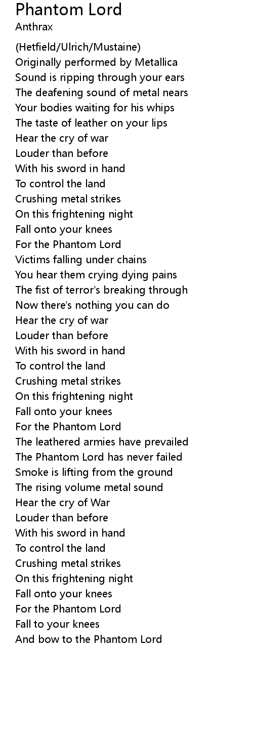 And bow to the Phantom Lord |