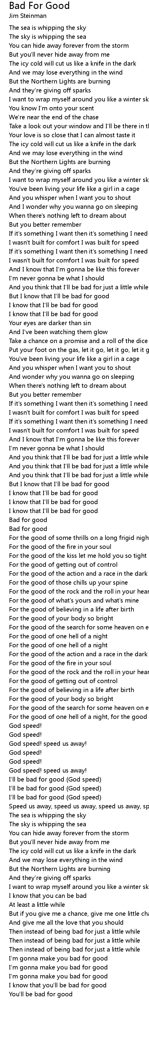 I'll be bad for good (God speed) |