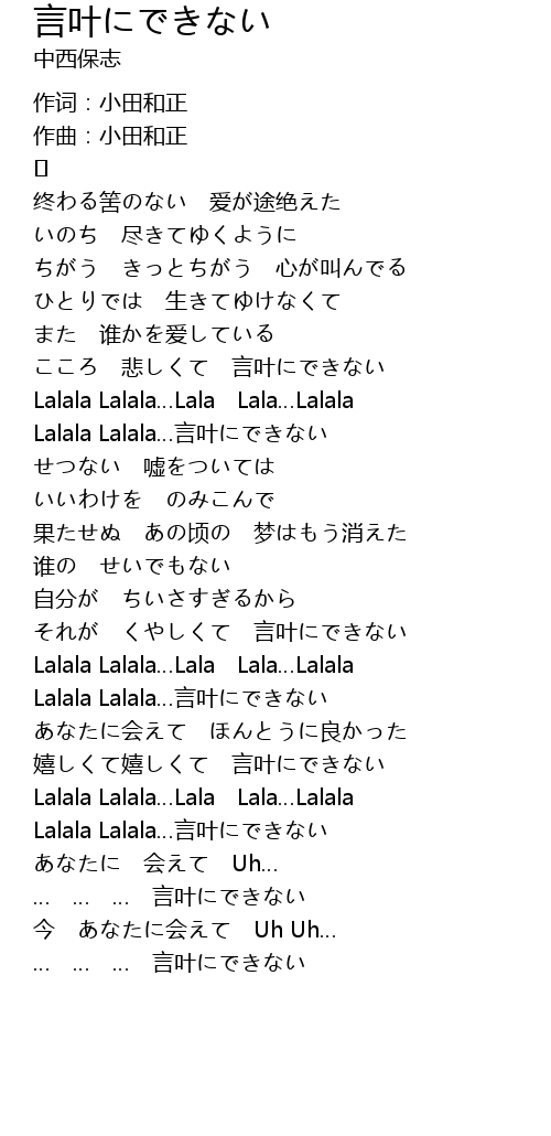 | こころ 悲しくて 言叶にできない | |