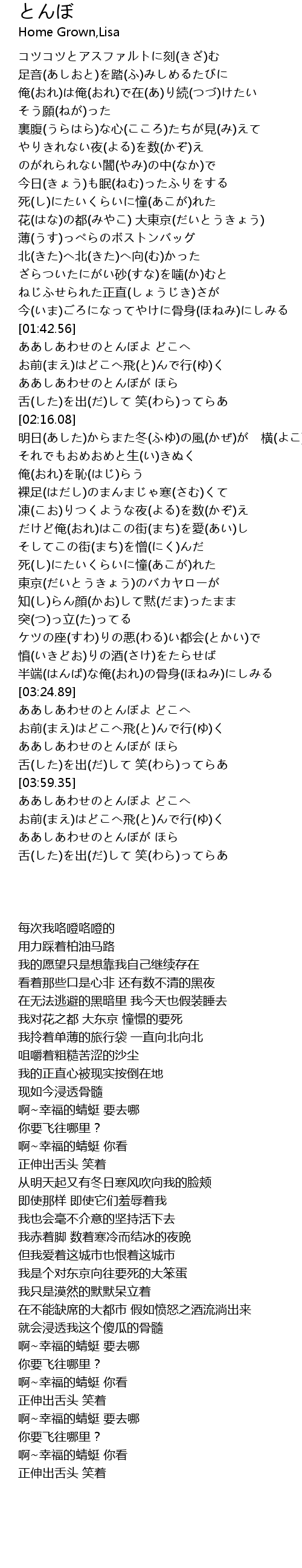 | [04:02.41] | ああしあわせのとんぼよ どこへ |