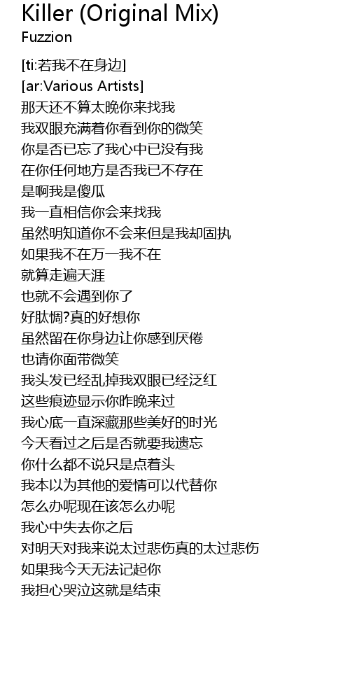 | [00:39.99] | 在你任何地方是否我已不存在 |