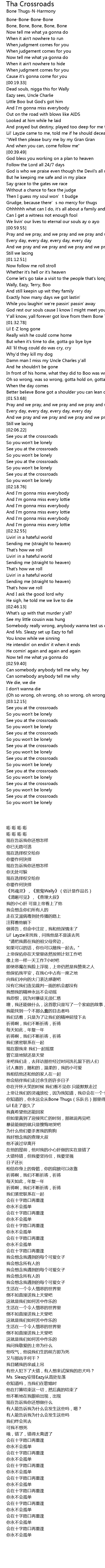 | [01:29.75] | 你知道的,你永远会从Bone Thugs(乐队名)那里得到爱 |
