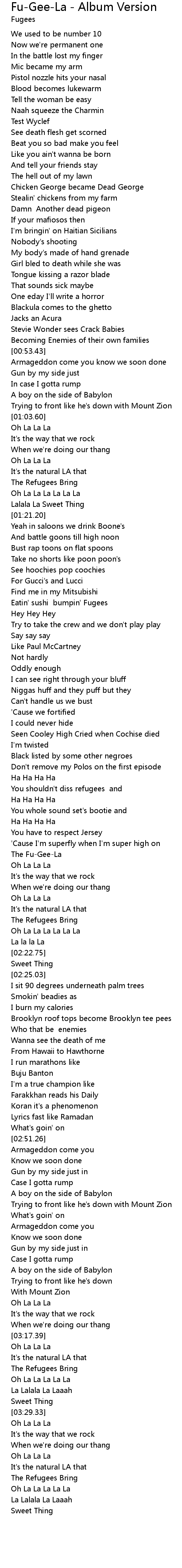 Fu-Gee-La - Album Version 歌词