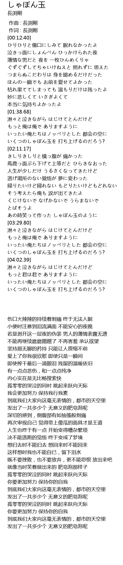 | [03:22.78] | あの時笑って作った しゃぼん玉のように |