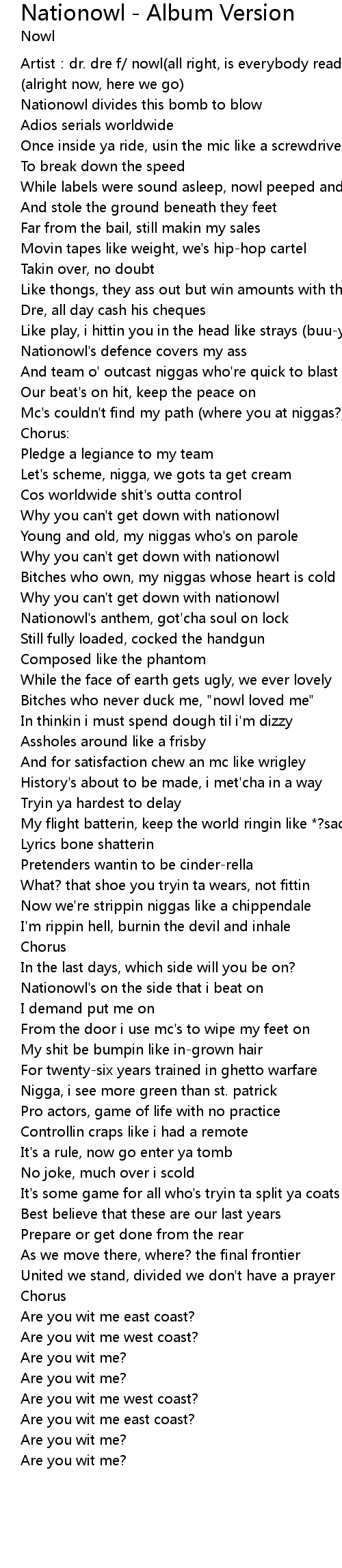 | Nationowl's anthem, got'cha soul on lock | |