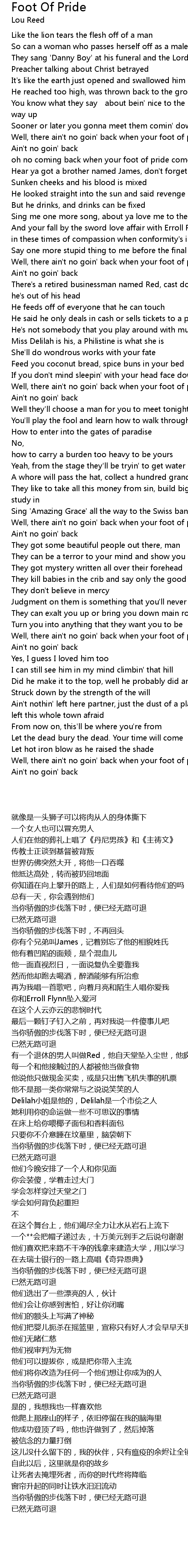 | 歌曲 | Foot Of Pride |