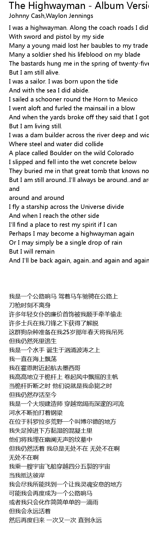 [00:10.56] I was a highwayman. Along the coach roads I did ride