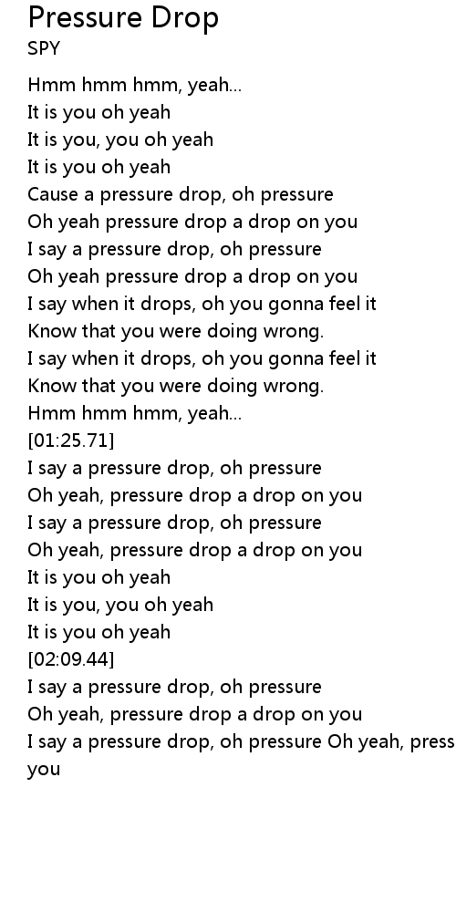 I say a pressure drop, oh pressure |