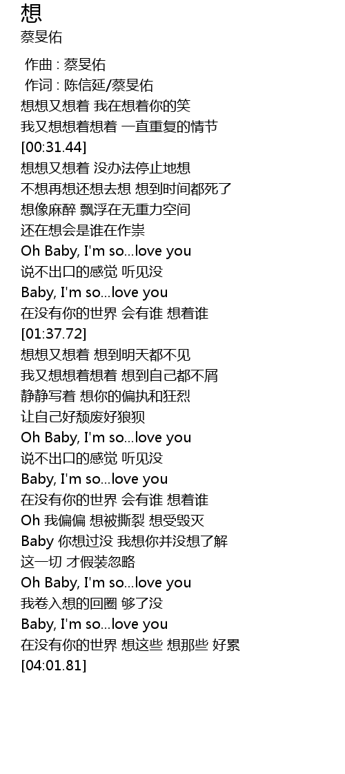 | [00:32.38] | 想想又想着 没办法停止地想 |