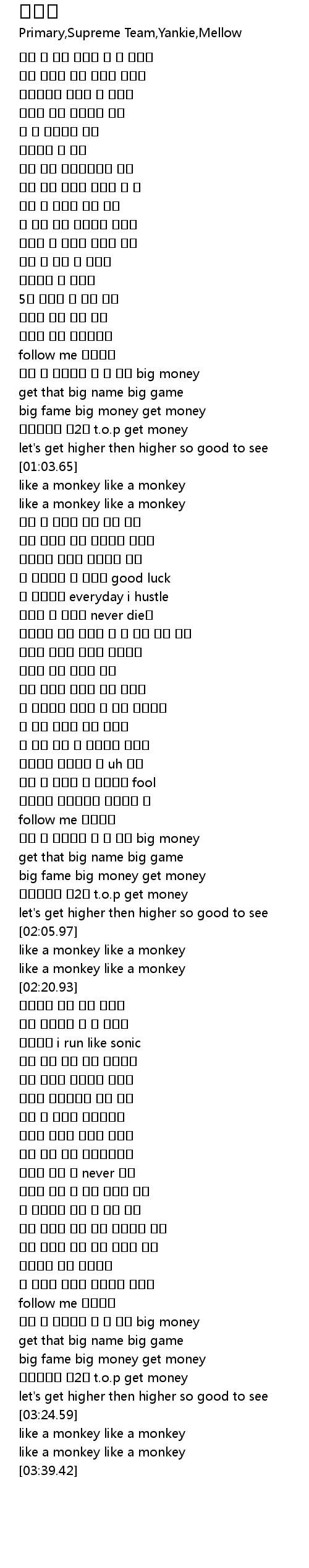 | [01:58.31] | 만들어줄게 제2의 t.o.p get money |
