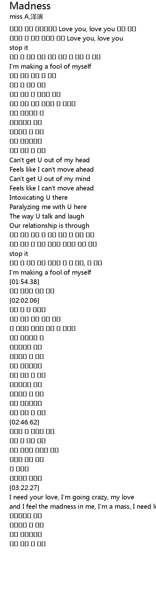 | [03:29.07] | and I feel the madness in me, I' m a mass, I need love |