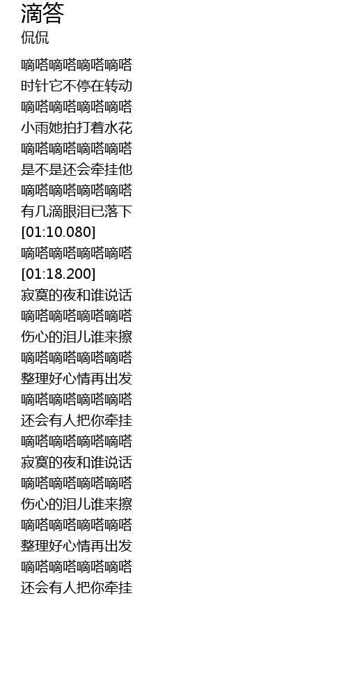 | [01:13.890] | 嘀嗒嘀嗒嘀嗒嘀嗒 |