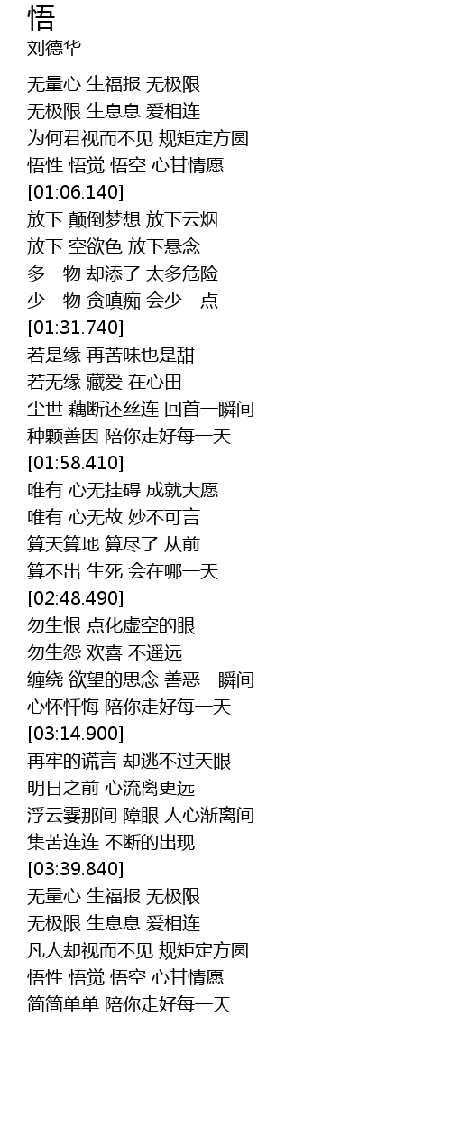 | [03:59.490] | 悟性 悟觉 悟空 心甘情愿 |