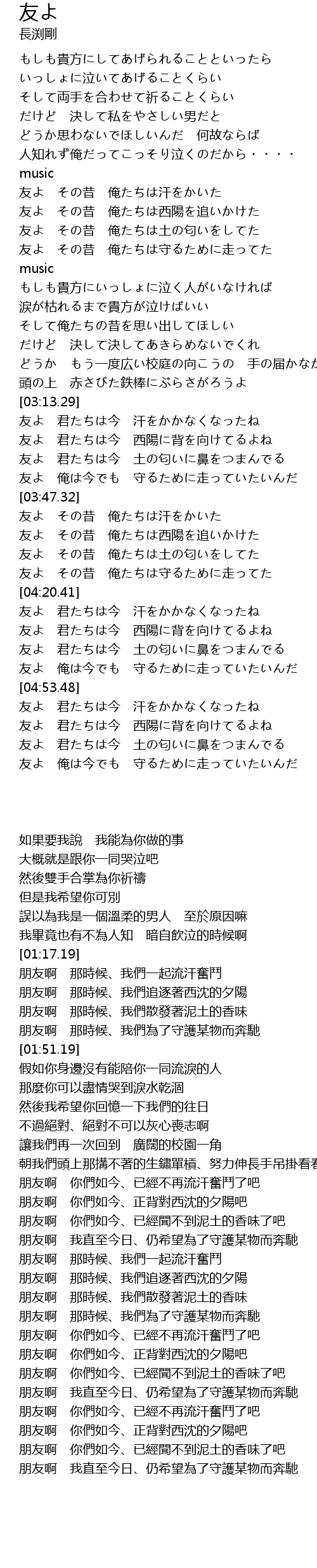 | [03:48.32] | 友よ その昔 俺たちは汗をかいた |