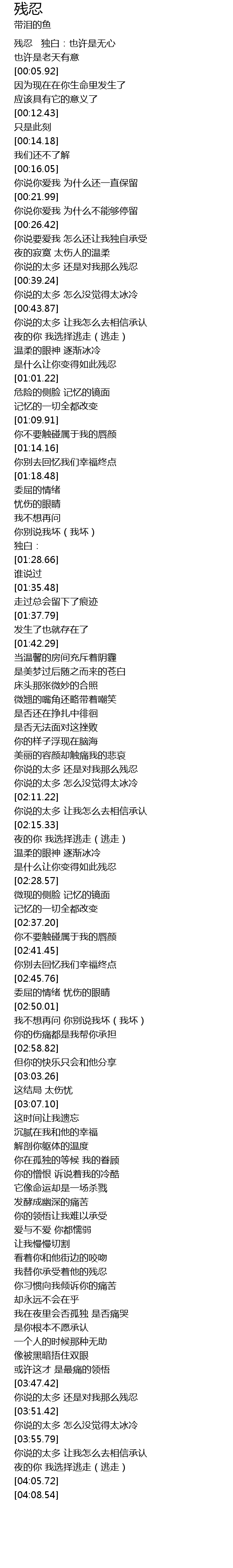 | [00:00.43] | 残忍 独白:也许是无心 |