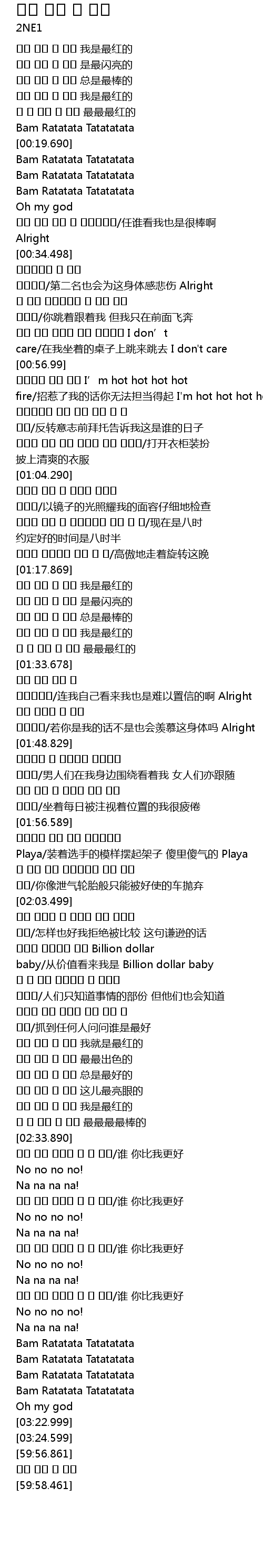 | [00:03.629] | 내가 제일 잘 나가 我是最红的 |