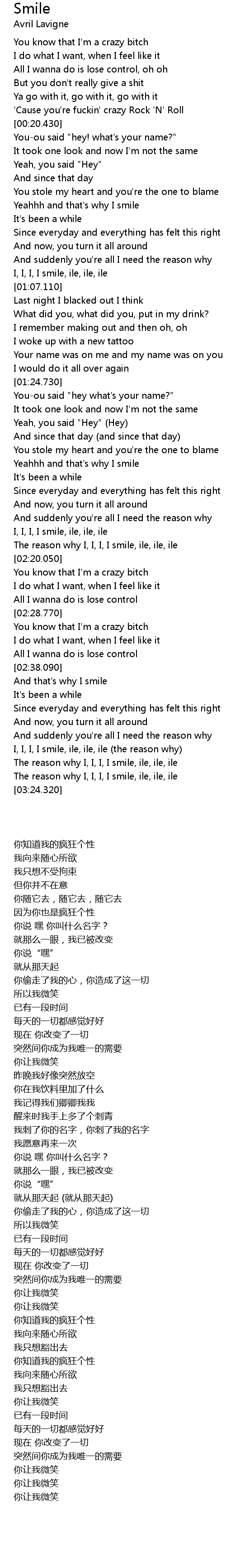 [02:58.820] I, I, I, I smile, ile, ile, ile (the reason why)