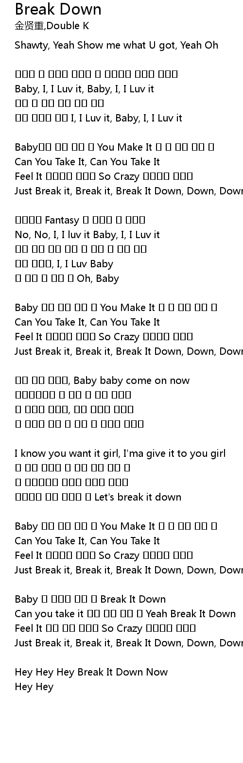 | Can you take it 이젠 나를 느껴 봐 Yeah Break It Down | |