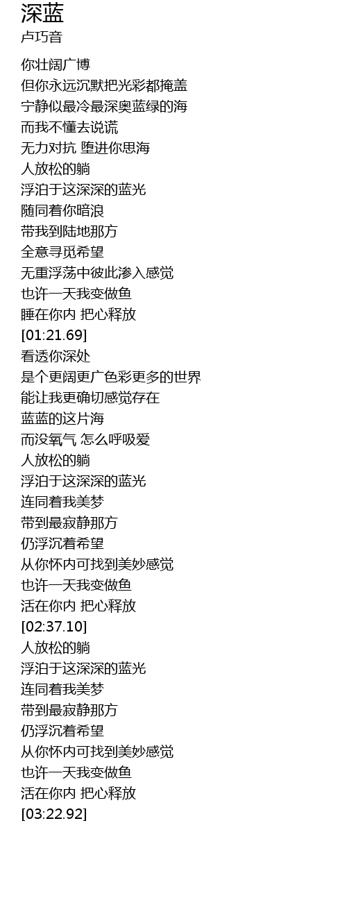 | [01:51.89] | 蓝蓝的这片海 |
