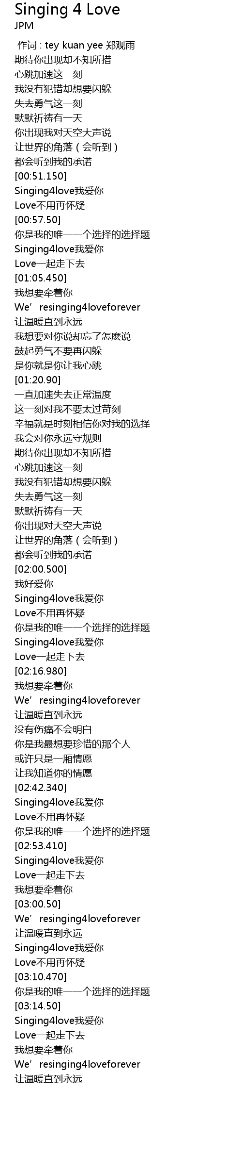 | [03:14.640] | Singing4love我爱你 |