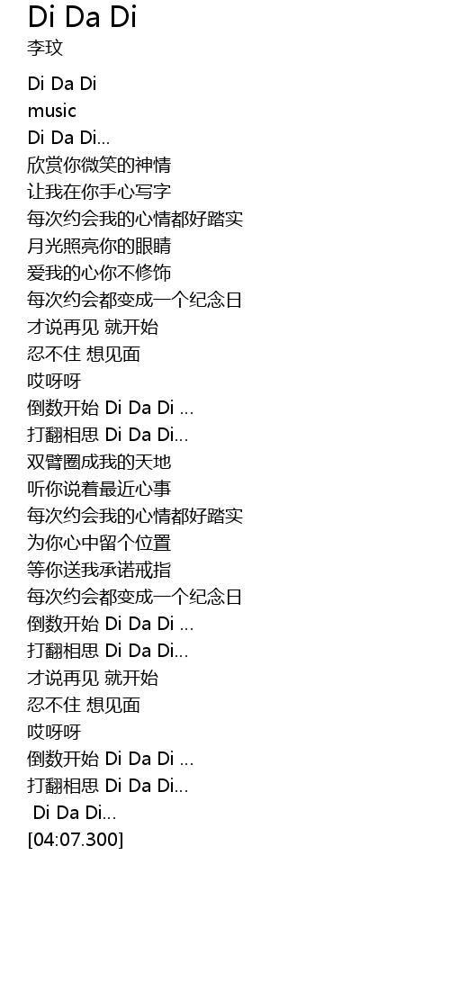| [02:30.790] | 倒数开始 Di Da Di … |