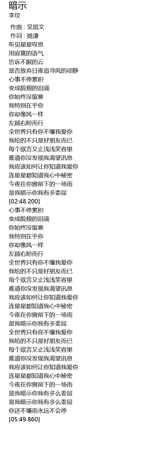 | [02:33.540] | 是我暗示你我有多委屈 |